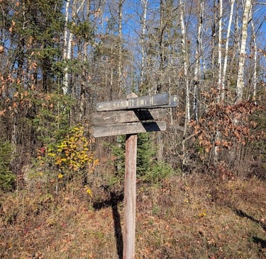 We started down Leigh Road (Charlie’s Cheese) and continued on Lower Kaubashine, rolling past the south side of Winter Park in Minocqua, where pavement gives way to wandering forest roads. The sky was a brilliant, clear October blue. As soon as we left town, the Chequamegon surrounded us — a small corner of the 800,000+ acres of public forest that stretches across northern Wisconsin. Even knowing the number, you don’t grasp the scale until you’re in the middle of it. Then it’s simply space. Quiet. Trees for miles.